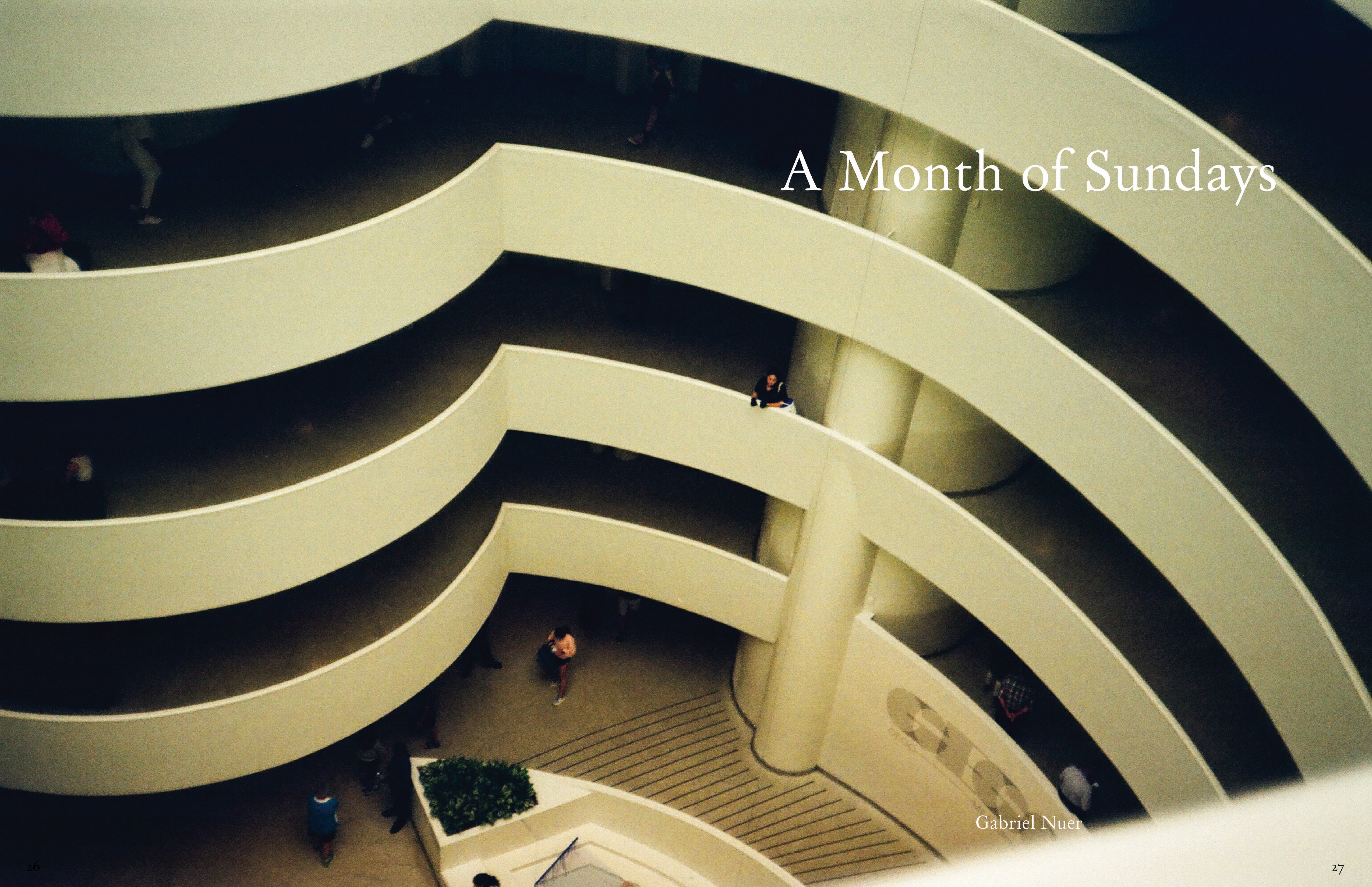 <p-color-blue>A Month of Sundays<p-color-blue> is a narrative work of <p-color-blue>auto-fiction<p-color-blue> that loosely ties images of the <p-color-blue>real world<p-color-blue> with the feelings and events which produced them. It is a story told through the ideas and beliefs of others, exploring how we define ourselves through <p-color-blue>our alignment with and rejection of<p-color-blue> the ways of being of the people around us. The work spans an indeterminate amount of time, and exists in that space of <p-color-blue>perpetual waiting that comes before life truly begins<p-color-blue>. To purchase a copy or learn more, contact via email gabenuer@gmail.com or on Instagram @nhngabriel