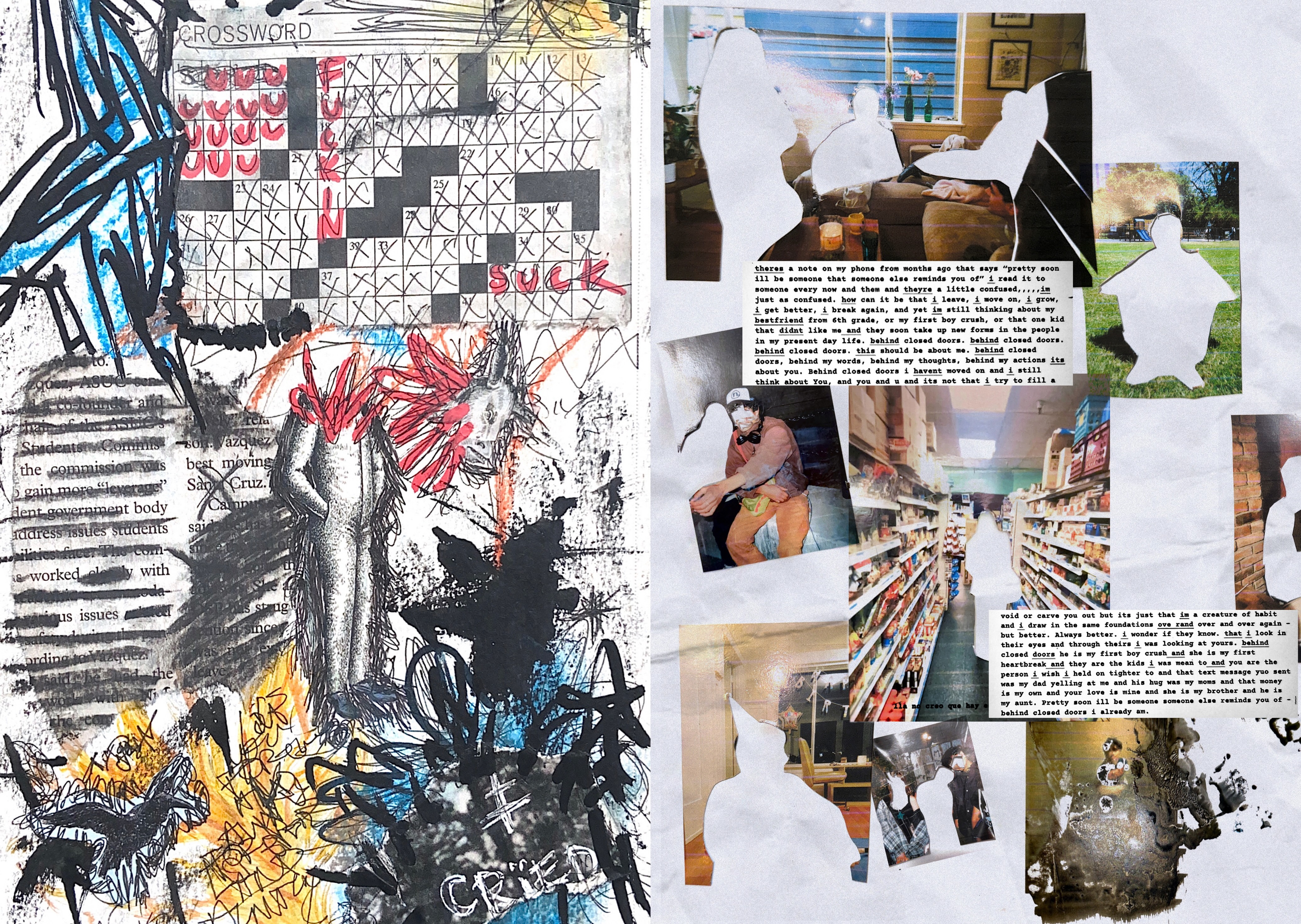 GAG! Magazine's Vol 1 "<p-color-blue>Behind Closed Doors<p-color-blue>" was an exploration of the <p-color-blue>raw, unfiltered parts<p-color-blue> of ourselves that emerge when <p-color-blue>no one else is looking<p-color-blue>. It is a <p-color-blue>peek behind the curtain<p-color-blue> into the creative process and the moments of self-reflection that come with it. The magazine was edited by Jovanny Martinez and Gabriel Nuer, with formatting by Gabriel Nuer